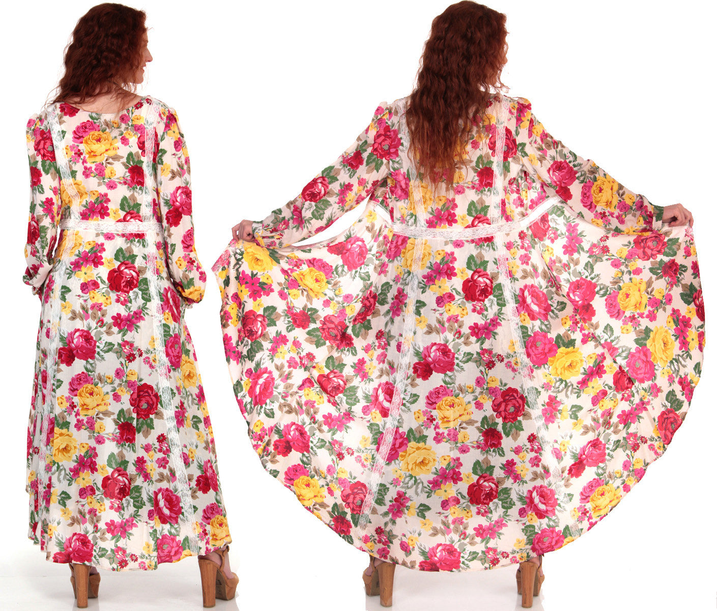 WhatWouldSusieWear ROSEY Lace Duster Jacket with Lace Trim. Fields of Bright Pink Rose and Yellow Bouquets. Soft Flowy Rayon. Subtle Poet Sleeves that close with Clear Glasslike Flower Buttons. Lace Trim on front and back. Great movement. Throw together with your own jeans, cut off shorts or Whatever! So fun and flirty to wear. Feels great! Looks great!