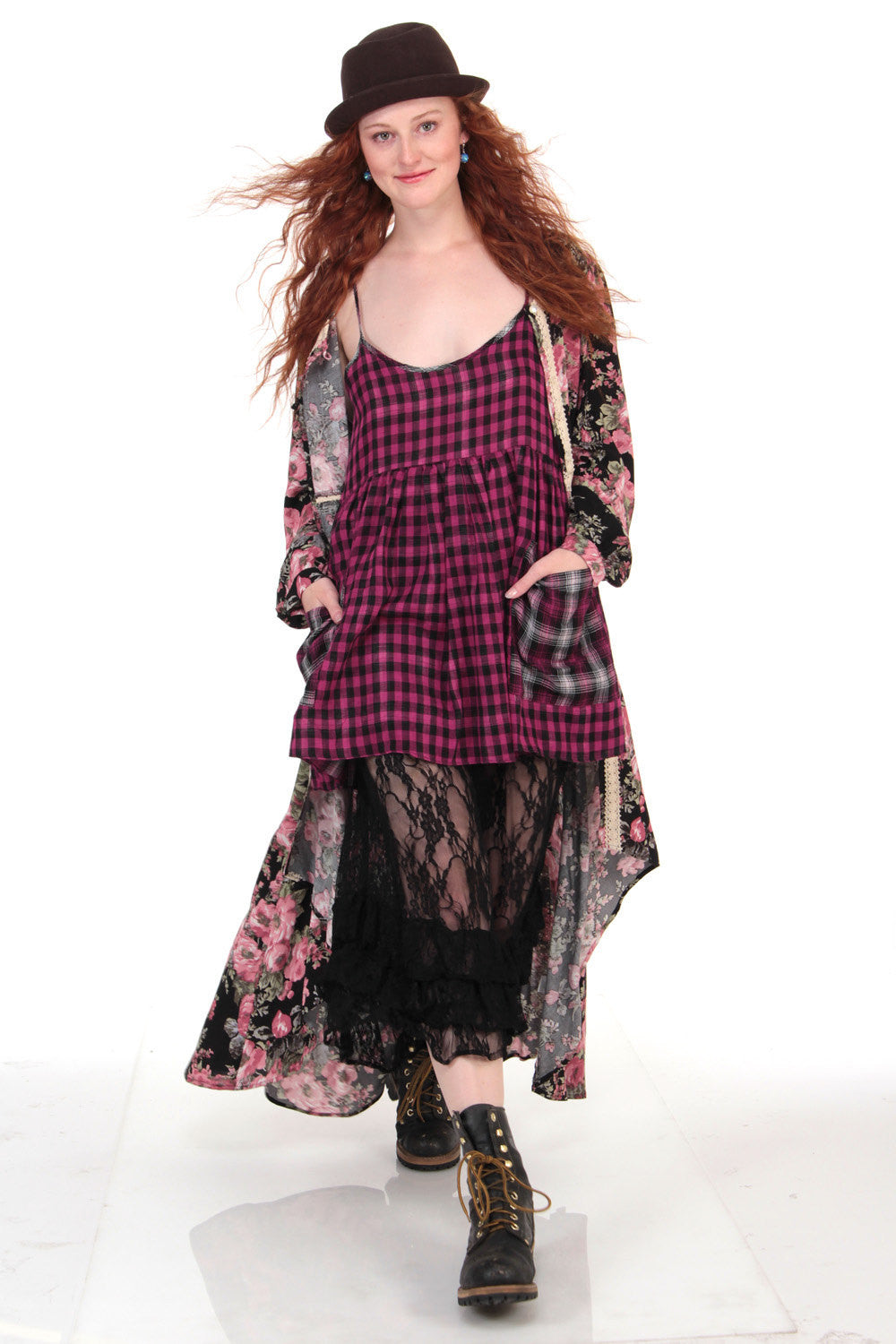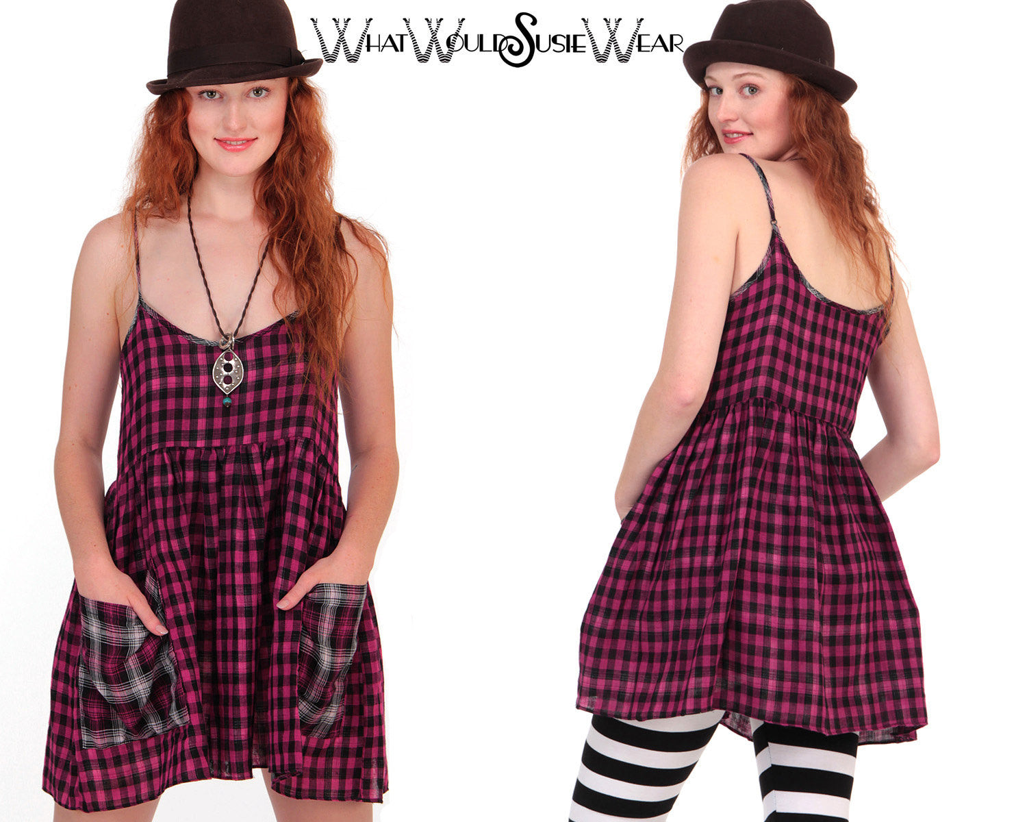 WWSW Stevie Mica Mini Dress in Light Cotton Flannel. Two slouchy pockets and adjustable straps. Great worn alone or as shown over our Black and White DaddyLongLegz Leggings, Our Black Lace RITA PantalOOnie's or over your jeans. No matter how ya wear it your going to love it!
