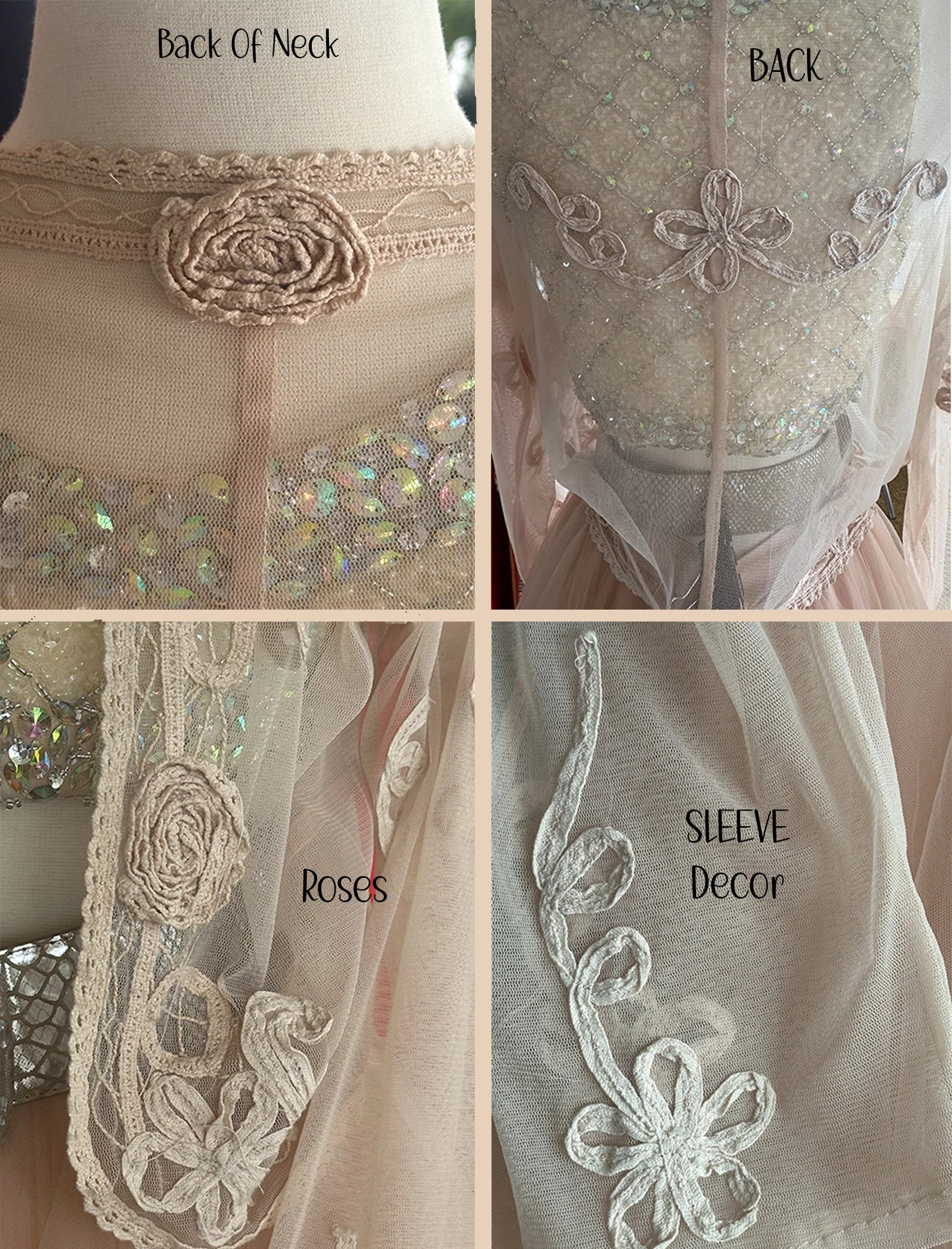 Fabric: Sheer Netted Nylon, Crochet Trim