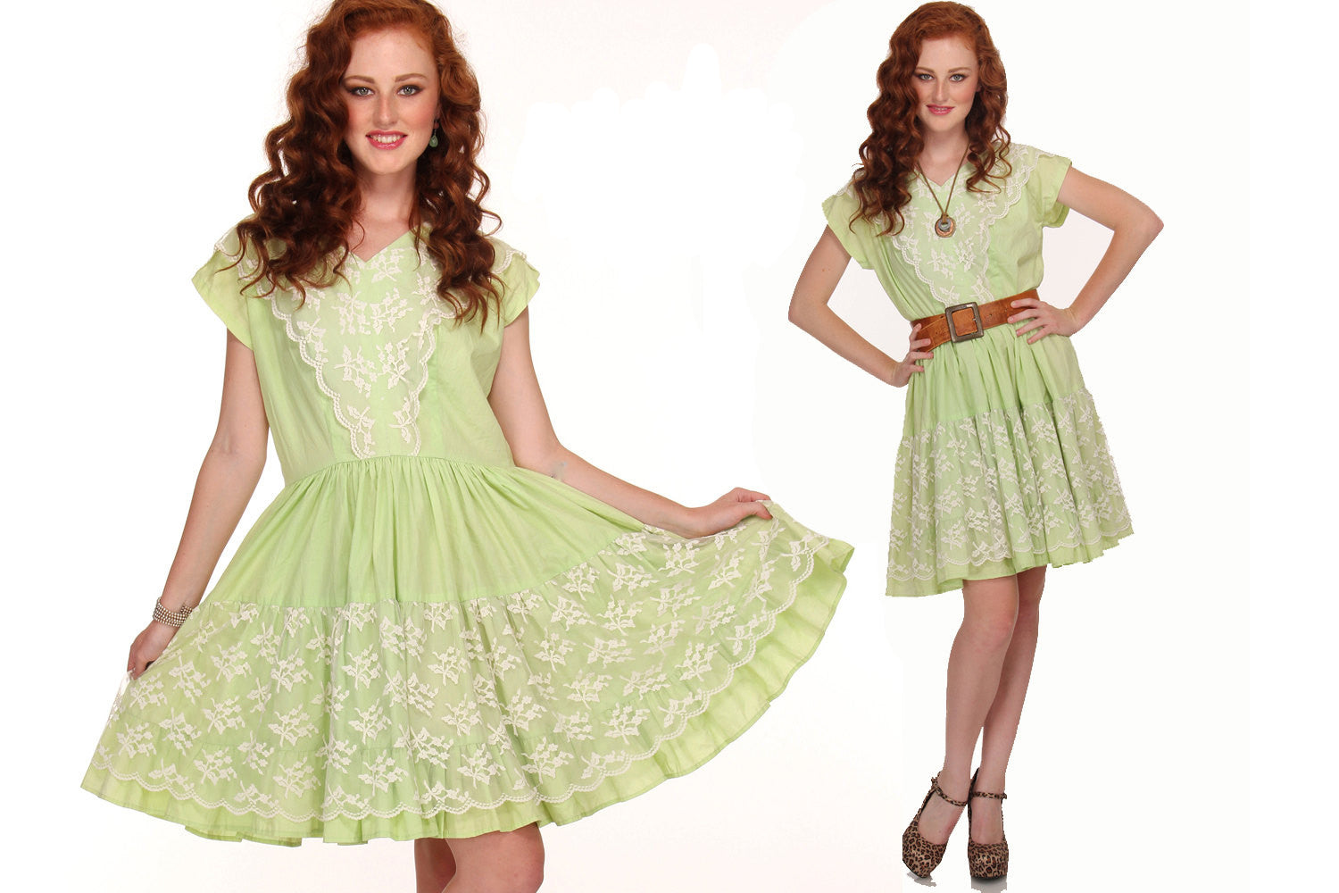 The color is yummy, and it is lightweight. Wear as shown loose or belted, with pumps, leopard heels or with a pair of western boots. Wide enough skirt to wear with a petticoat. Great for a Country Western party, garden party or just a day out! Take a spin in this Whimsical, whirly twirly 50s dress!